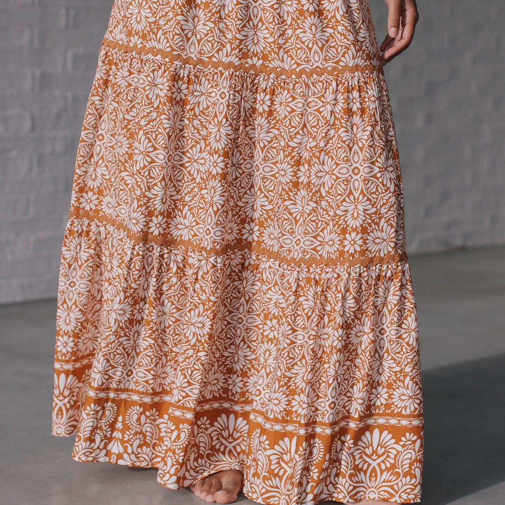 It's maxi skirt time! Summer days spent floating in your trusty maxi skirt, whether it's on holidays, at the beach, out to lunch....there's so many ways a maxi works in your life. A simple white t-shirt or tank looks lovely, or work with the gorgeous mustard/white decorative pattern and team with navy. And don't get us started on how good a blue denim jacket will look with it. Note that this skirt is long, hence the "maxi". If you prefer it a bit shorter then hitch it up high.